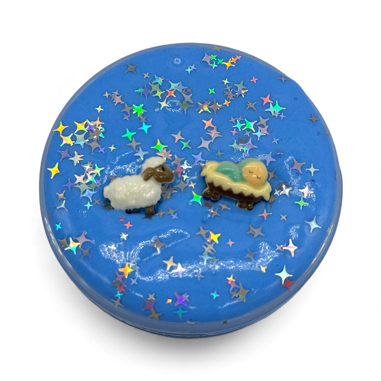 Slime kit that comes with 6oz slime + 1 packet of glitter stars +2 lamb and baby Jesus charm.